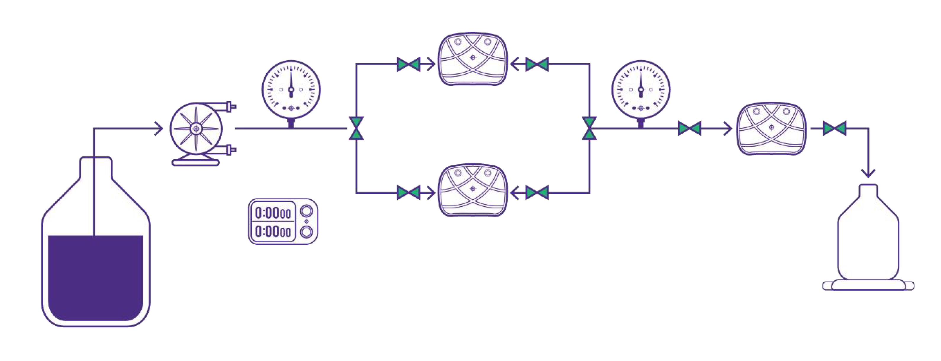 深层过滤需根据料液情况及需求选择合适的过滤方式,滤器型号和单级或两级过滤,连接配比可按照经验搭建,可根据实验结果进一步优化。