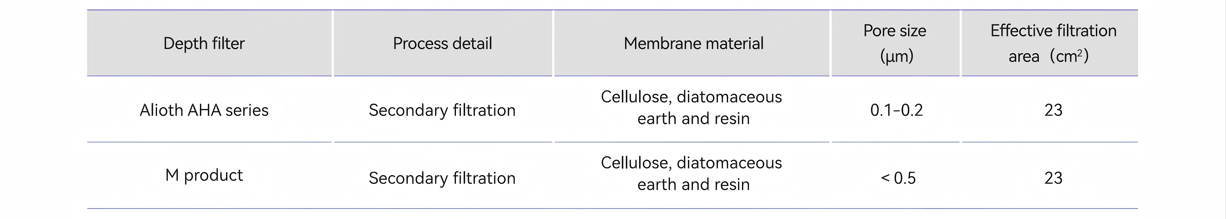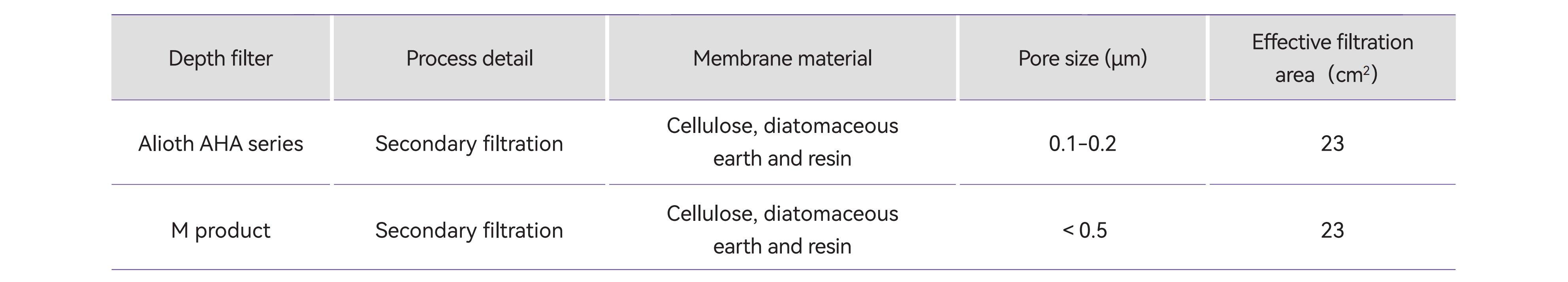 In the depth filtration process after low-pH incubation following affinity chromatography, Alioth AHA series depth filters outperformed M product in terms of log reduction in the removal of HCP & DNA & Protein A. Alioth AHA series depth filters showed superior performance in the adsorption of impurities.