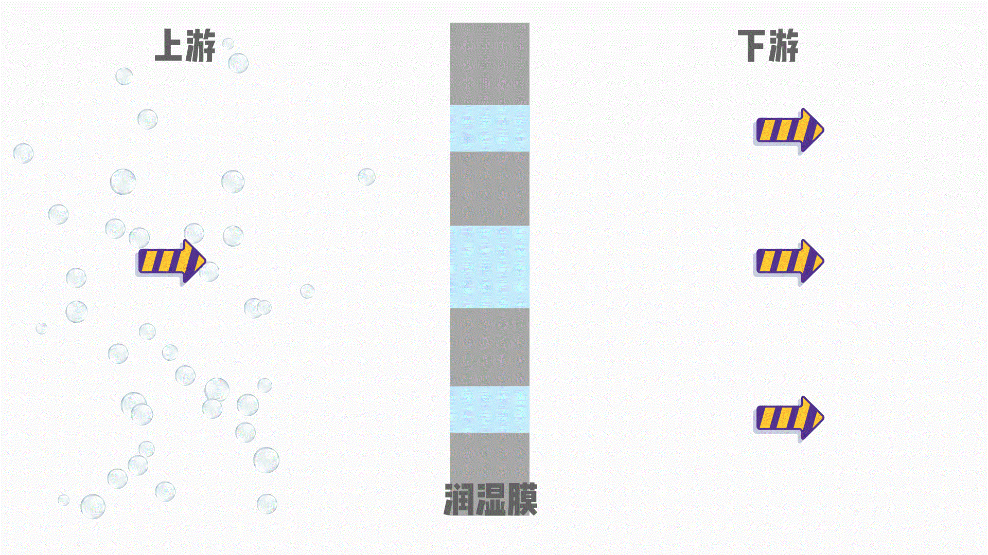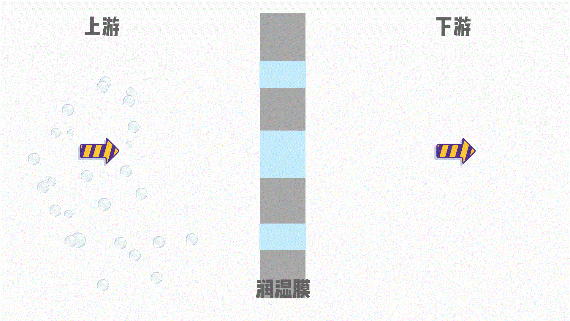 上游侧压力逐渐升高,达到临界值时,最大膜孔中的水被挤出,气体分子穿过膜孔