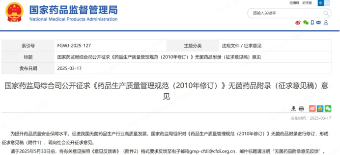2025年3月17日,国家药监局(NMPA)正式发布《无菌药品附录(征求意见稿)》,这是继2011年首版无菌药品生产规范发布14年以来的首次系统性修订。此次调整背后,是中国药品监管深度融入国际体系的战略布局:2023年NMPA以高标准通过PIC/S(国际药品检查合作计划)正式申请者资质审核,而此次修订内容更是充分对标国际——不仅与2022年更新的《欧盟GMP附录1:无菌药品的生产》技术要求全面接轨,更呼应了PIC/S成员国对无菌药品生产的前沿监管要求。