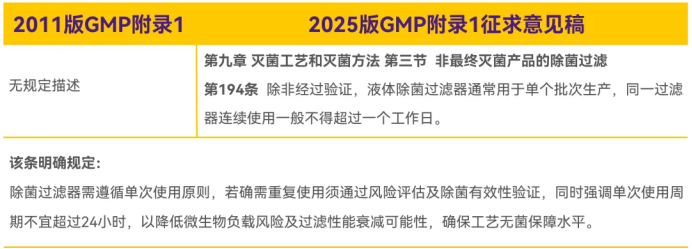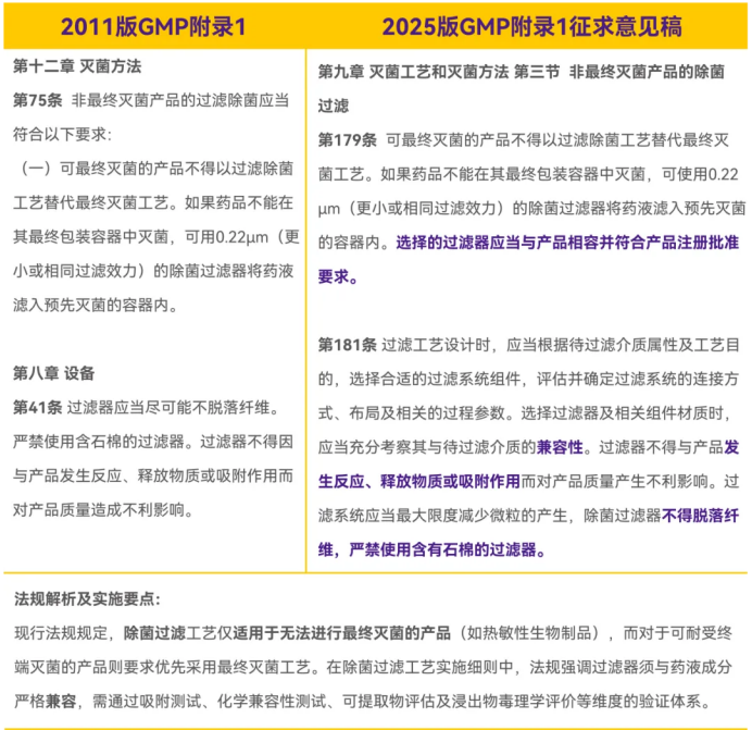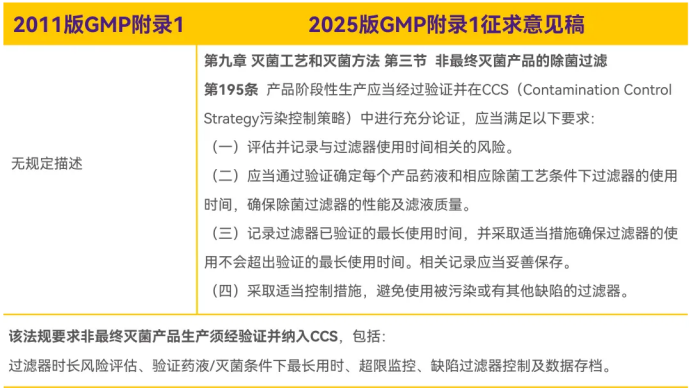 - 新增:过滤器材质必须与药液相容性验证(第179、181条)