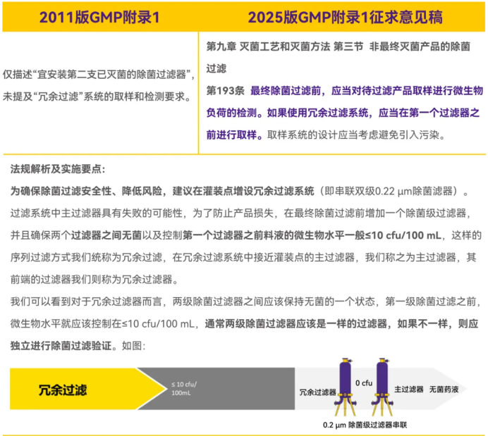- 微生物监控:冗余系统需在首个过滤器前进行微生物负荷取样(第193条)