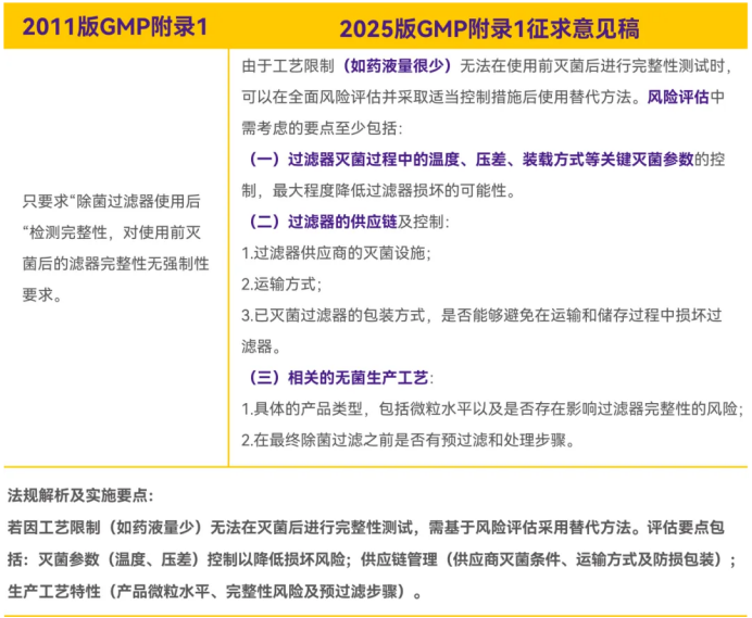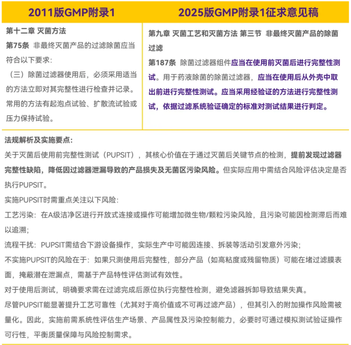 - 关键环节:过滤器使用前灭菌后完整性测试PUPSIT(第187条)