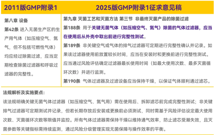 - 气体过滤:关键无菌气体(如氮气)过滤器同标准管理(第188条)