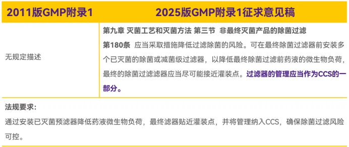- 收紧:除菌过滤系统布局需结合微生物负荷监测(第180条)