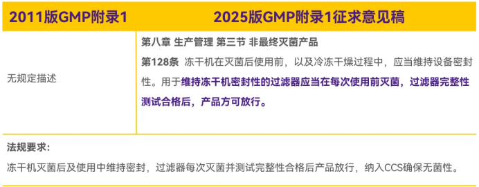 - 场景覆盖:冻干机密封性过滤器需灭菌+测试双重保障(第128条)