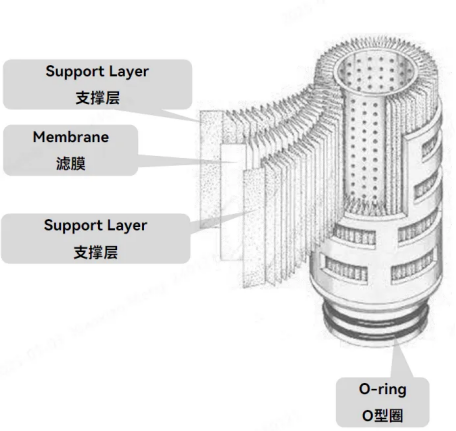 除菌过滤膜通常用聚四氟乙烯,聚偏二氟乙稀、聚丙烯或聚乙烯类聚合物制造。除滤膜以外,组配好的过滤器组件,特别是打褶式滤芯,有上游和下游的支撑及排水材料。通常,这些支撑、排水层由疏水聚丙烯无纺介质组成。有些过滤器的内核及O形圈转接头用不锈钢或其它材料加强,以增加滤芯的寿命。结构材料对装配好的过滤器组件的若干关键特性有影响,如耐热性、化学兼容性、抗氧化性以及机械特性。过滤器的使用者必须对具体过滤应用中所用材料的适用性进行评估。
