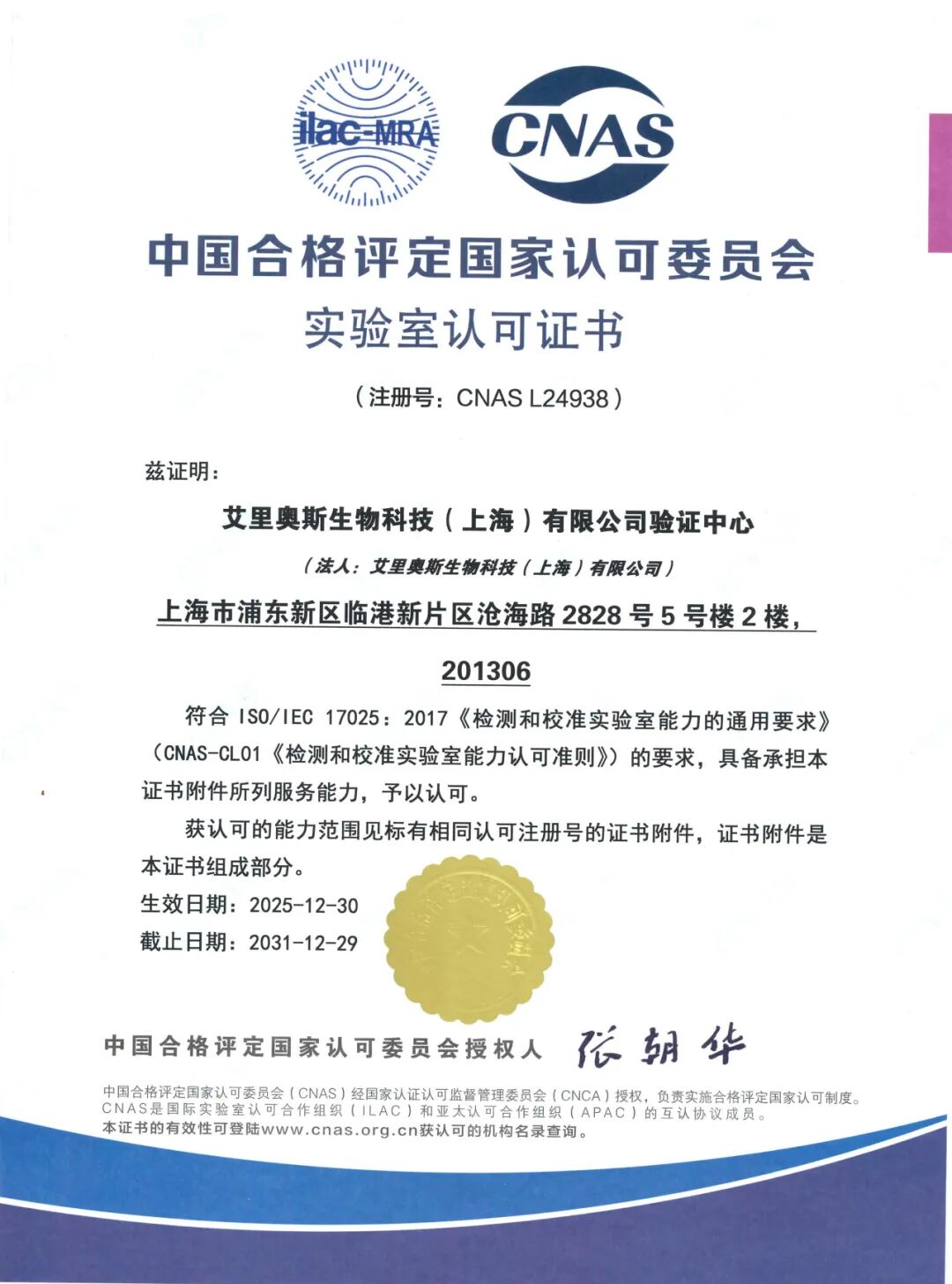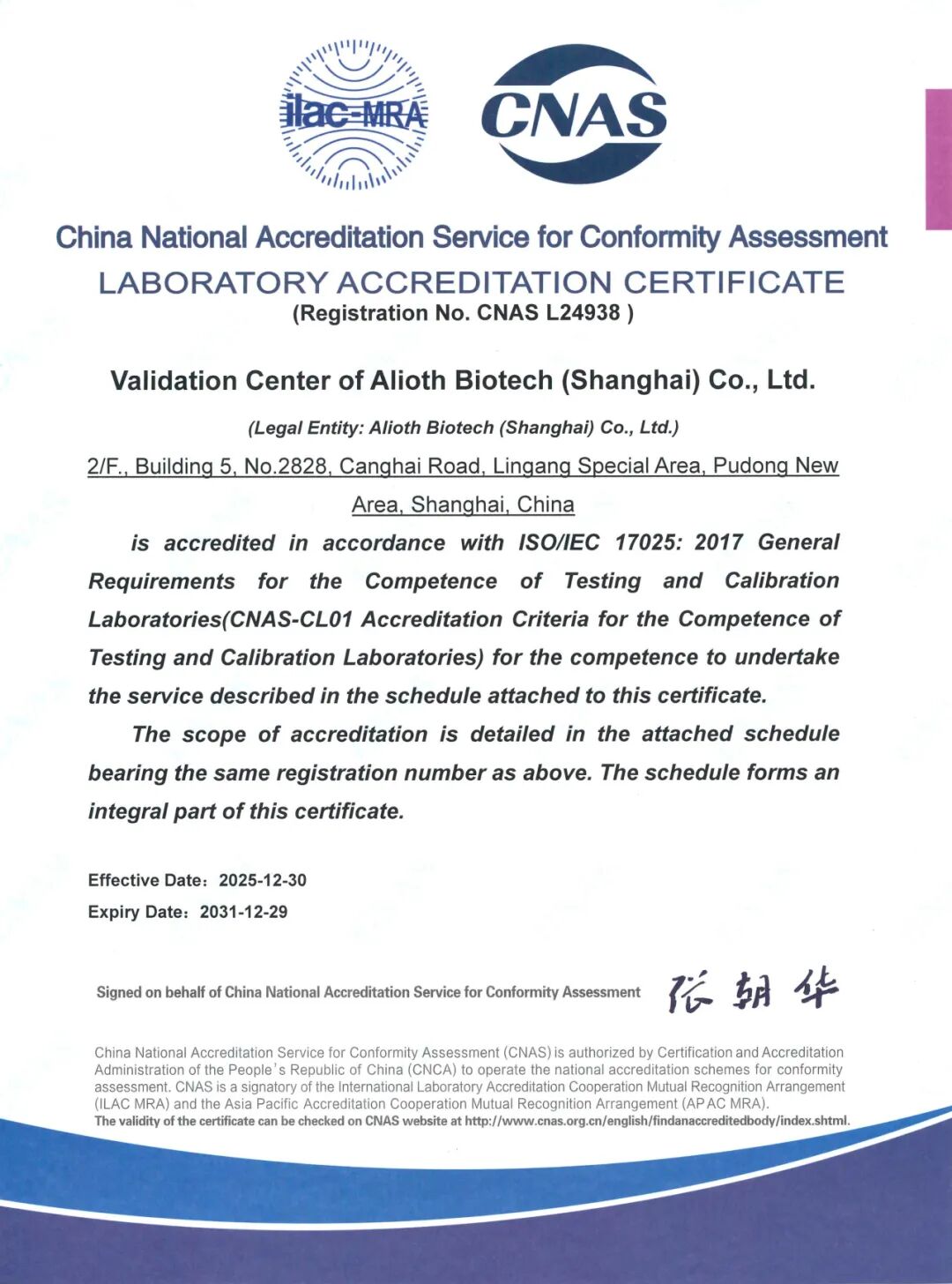 Recently, the Verification Center of Alioth Biotech (Shanghai) Co., Ltd. has officially passed the evaluation by the China National Accreditation Service for Conformity Assessment (CNAS) and obtained the laboratory accreditation certificate. This marks that the quality management system and technical capabilities of the Alioth Verification Center have reached international standard levels.