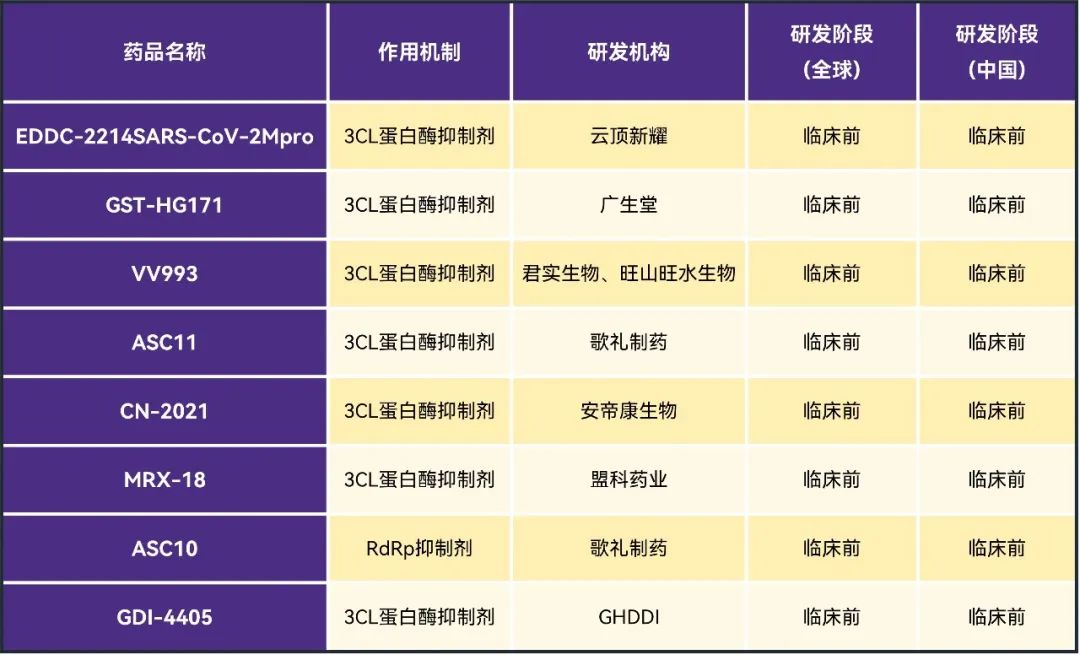 Table 4. List of preclinical projects of new crown small molecule drugs in domestic enterprises