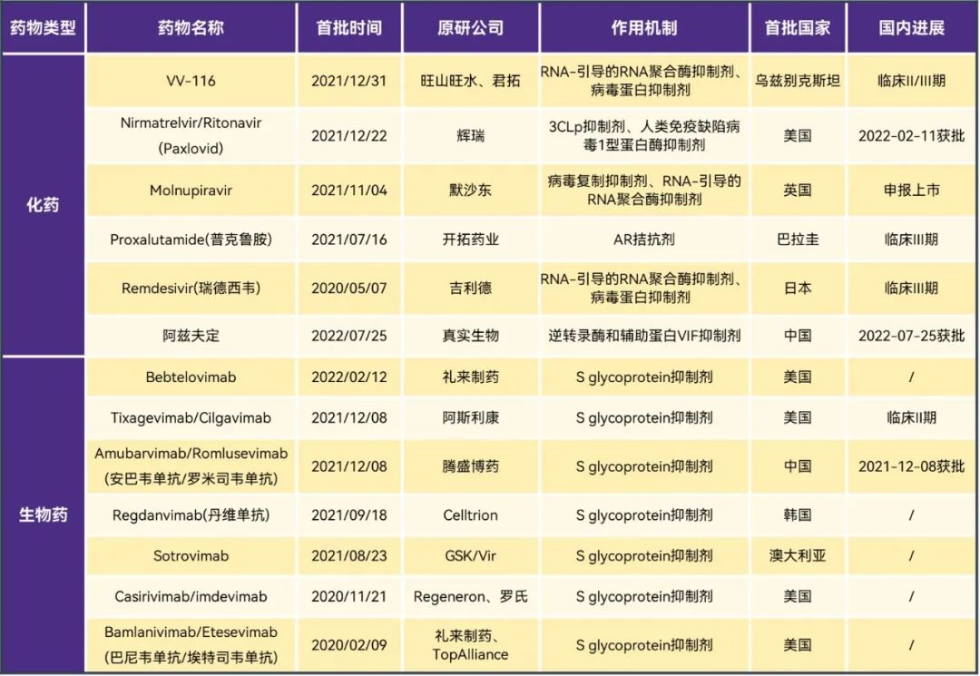 Table 2. Global approvals of new crown therapeutic drugs amount to more than 10