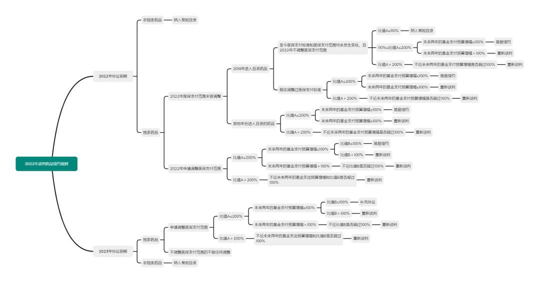 Therefore, the ratio A is used to determine the downward adjustment of the payment standard, so as to reasonably adjust the payment of the medical insurance fund and keep the income and expenditure of the medical insurance fund stable. For example, if the ratio A is 150 and the average annual actual expenditure of the medical insurance fund is less than 0.2 billion yuan, the payment standard will be reduced by 10 percent and the simple renewal process will be followed. The larger A, the higher the actual expenditure of the medical insurance fund, the larger the reduction. If the ratio A exceeds 200, it will need to be renegotiated.