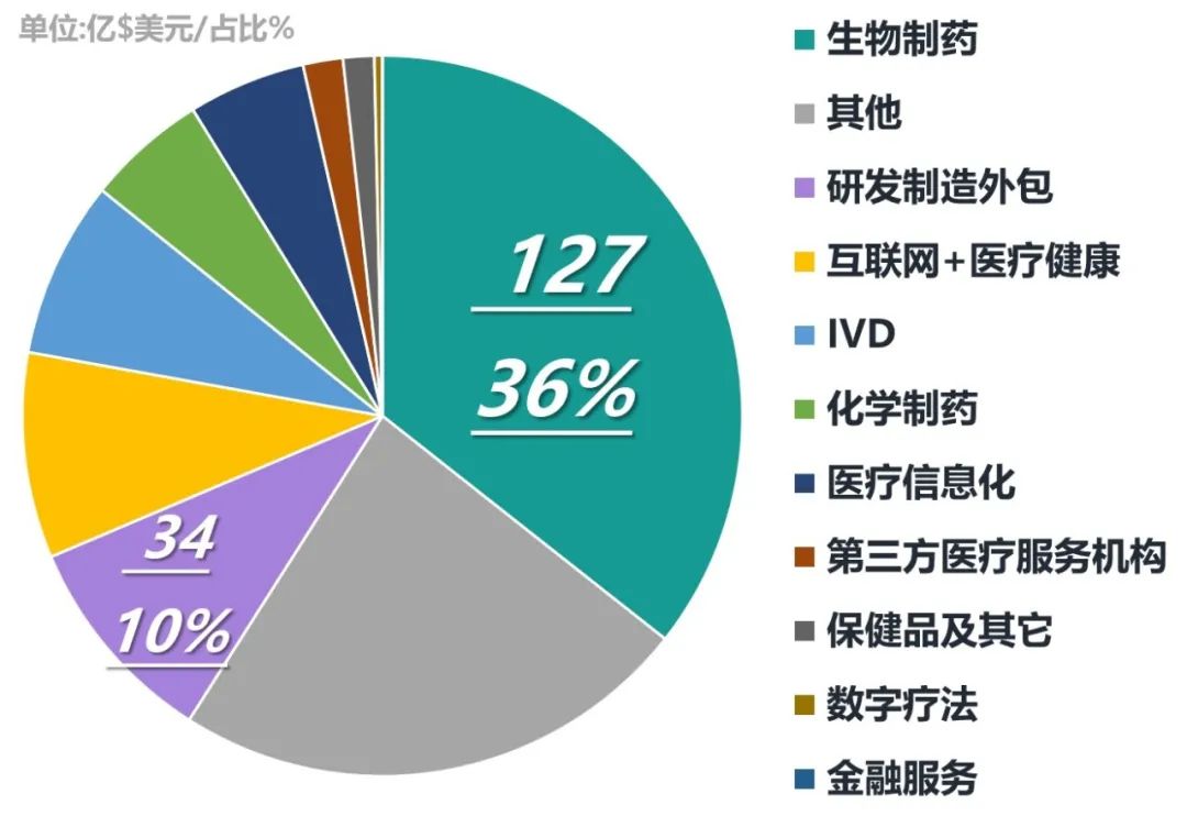 this year, China's biomedical industry has maintained its leading position in the national medical and health segment by virtue of its absolute advantage of "double first" in the amount of financing and the number of financing events. 36% of the total industry, while R & D and manufacturing outsourcing accounted for 10% of the total, the two are the largest and higher growth rate of the sub-investment areas.